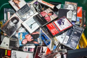 Photo of a box of cassette tapes and pre-recorded cassettes